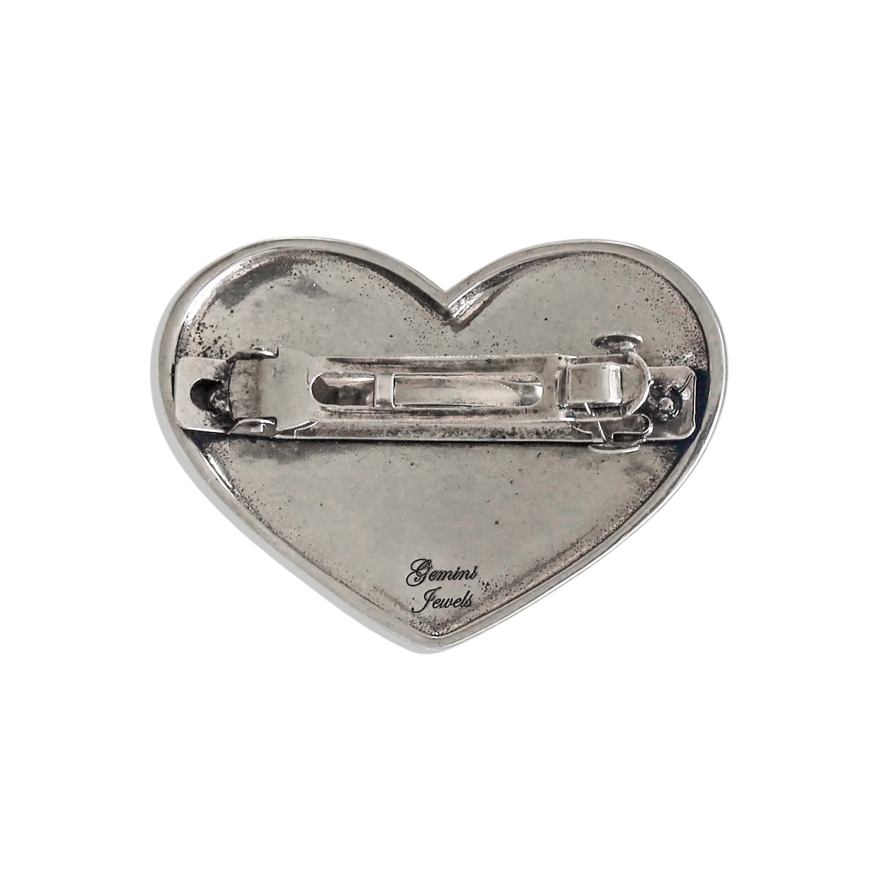 Silver heart hair clip with scroll detailing.